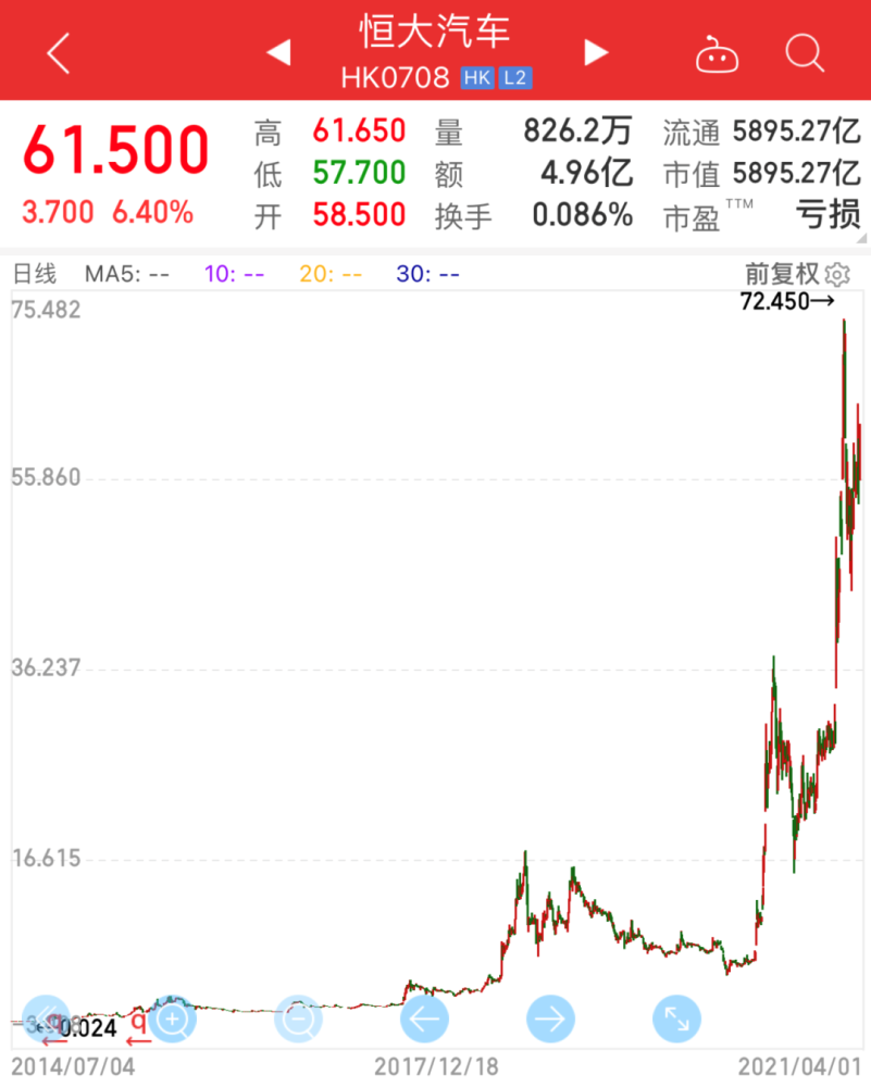 恒大汽车至今销量为0,按照官方声明,他们2021年底开始试产,在宣传海报中,我们只能看到一组组静态图,连个动态的PPT都没有,更别提样品车,在这样的情况下,恒大汽车的市值被抬到了5000亿的高度,这里边涉及到什么,大家可以自行琢磨。